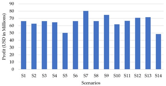 Having said that, the simulations result for the 14 considered scenarios (S1 to S14) in this work are presented in Table 4. Figure 7, in turn, presents the expected profit for each simulated scenario.