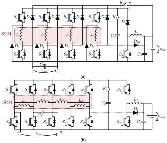 IBCs for plug-in hybrid vehicles based on SRMs proposed by H. Cheng et al. in 2020: (a) [25]; (b) [26].