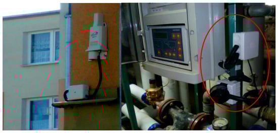 Figure 2 shows the “Egain Hub” weather forecast receiver mounted on the outer wall of one of the examined buildings together with a temperature sensor installed in the heating station.