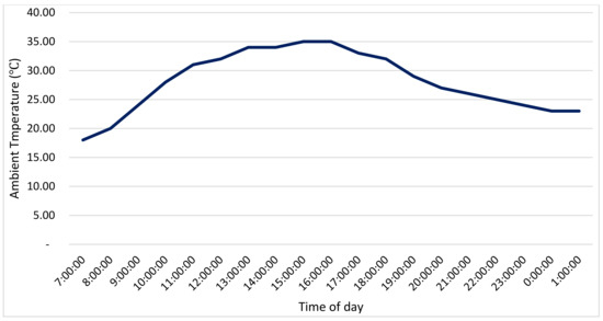 The AT was integrated into the HSR equation to vigorously identify the environmental states on-site. The AT characteristics for a solar plant installed in the Northern Cape allow for the values presented in Figure 6.