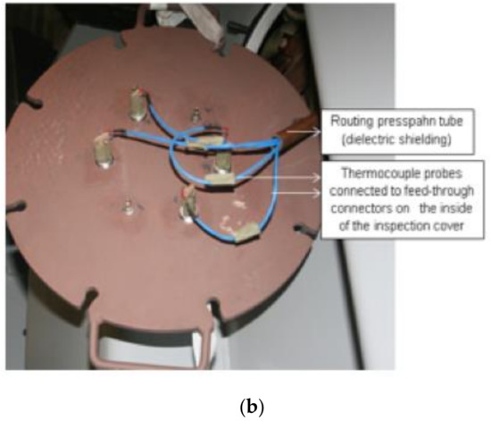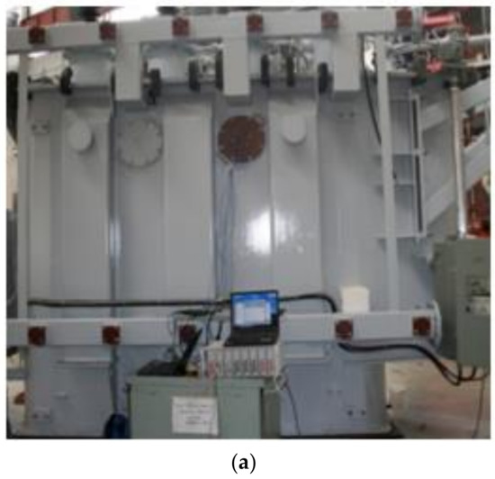 In consideration of substantiating the practicability and reliability of the proposed thermal model, a TRT was performed. The TRT is a critical test that should be an integral part of testing for all oil-immersed transformers. In the test, the restriction of the rise in temperature in the windings and insulating oil was corroborated as warranted by the original equipment manufacturer (OEM). Thermocouple probes illustrated in Figure 7 were positioned to measure the dissemination of the temperature of the studied transformer case studies. The test was carried out in compliance with the IEC 60076-7 guidelines.