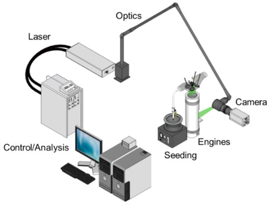 - Baum, E.; Peterson, B.; Surmann, C.; Michaelis, D.; Böhm, B.; Dreizler, A. Investigation of the 3D Flow Field in an IC Engine Using Tomographic PIV. Proc. Combust. Inst. 2013, 34, 2903–2910. [Google Scholar] [CrossRef]