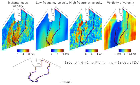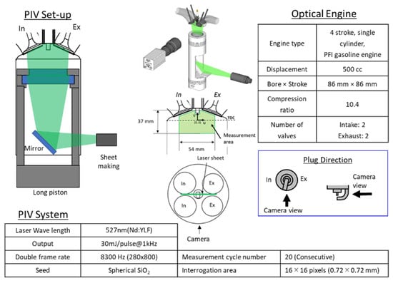 - Ikeda, Y.; Furui, T.; Le, M.K.; Nishiyama, A. In-Cylinder Flow Measurement in SI Engine under Firing Conditions by High-Speed PIV. In Proceedings of the 18th International Symposium on Applications of Laser and Imaging Techniques to Fluid Mechanics, Lisbon, Portugal, 4–7 July 2016. [Google Scholar]