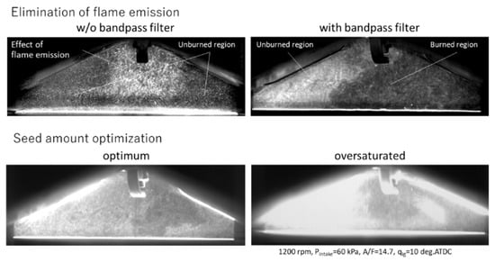 - Nishiyama, A.; Le, M.K.; Furui, T.; Ikeda, Y. Simultaneous In-Cylinder Flow Measurement and Flame Imaging in a Realistic Operating Engine Environment Using High-Speed PIV. Appl. Sci. 2019, 9, 2678. [Google Scholar] [CrossRef] [Green Version]