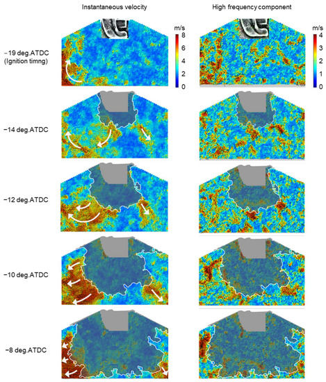- Kaneko, M.; Ikeda, Y.; Nakajima, T. Spatial Evaluation of In-Cylinder Turbulence Flow Using High-Resolution PIV. In Proceedings of the 10th International Symposium: Application of Laser Techniques to Fluid Mechanics, Lisbon, Portugal, 10–13 July 2000. [Google Scholar]