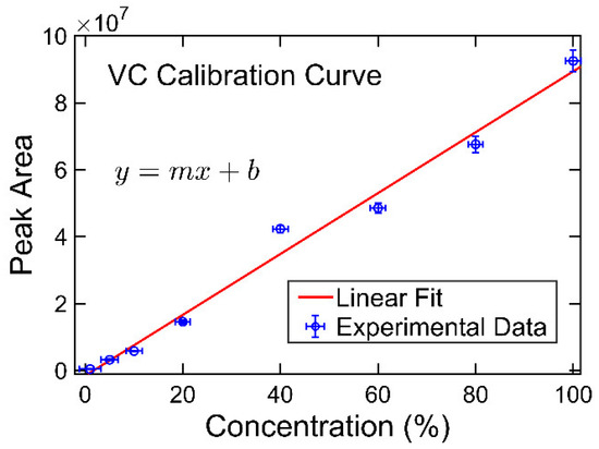 Calibration curve of vinylene carbonate (VC) with 95% confidence intervals.