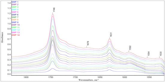 | Sample Code | TBN | A at 1746 cm−1 | A at 1631 cm−1 | A at 1169 cm−1 |