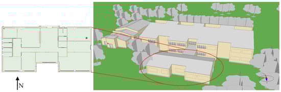 3. The building is located in Sant Cugat near Barcelona in Spain and is a part of a three-building school complex. The building complex and the studied building’s floor plan are presented in