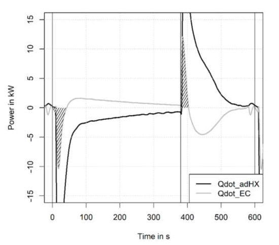 - The inlet and outlet temperatures of the adsorption heat exchanger and the evaporator-condenser. These temperatures are measured with pairwise calibrated Pt-100 sensors, TMG, with a measurement uncertainty of ±0.01 K.