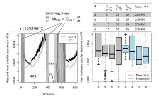 - If the in- and outlet temperatures and the pressure within the module is known, we can calculate an overall heat and mass transfer resistance for the evaporator-condenser and the adsorption heat exchanger. A differentiation between heat and mass transfer is not possible from the experimental data if the actual temperature of the component remains unknown.