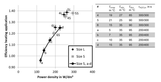 - Bendix, P.; Füldner, G.; Möllers, M.; Kummer, H.; Schnabel, L.; Henninger, S.; Henning, H.-M. Optimization of power density and metal-to-adsorbent weight ratio in coated adsorbers for adsorptive heat transformation applications. Appl. Therm. Eng. 2017, 124, 83–90. [Google Scholar] [CrossRef]