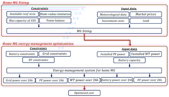 Figure 2. Scheme describing the proposed MG sizing and energy management system.