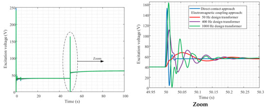 3.2. Modeling Results of the EESM Control System with Rotary Transformer (i.e., WPT) and Comparison to the Conventional Excitation (i.e., Sliding Contacts)