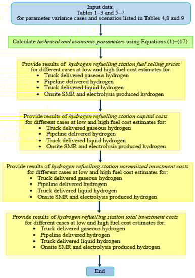 The capital cost and cost per refuelling station are determined by summing (i) the total hardware, (ii) installation, (iii) storage, and (iv) utility costs necessary for maintaining a hydrogen refuelling station.