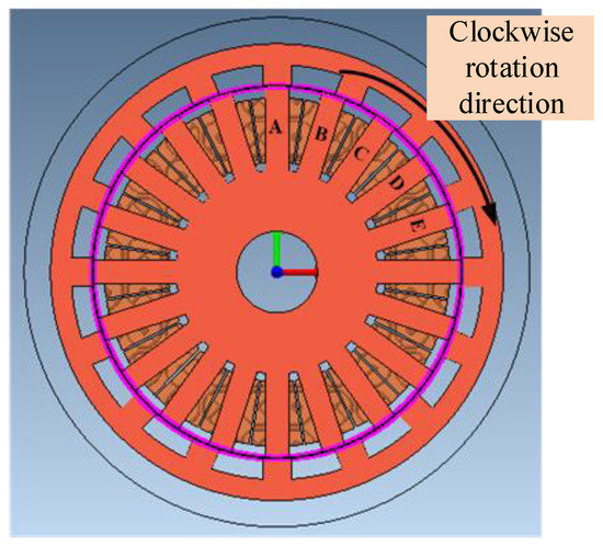 This section presents a simulation-based analysis of OSRM using Magnet software. The stator and rotor initial position of the OSRM finite simulation model is shown in Figure 3.