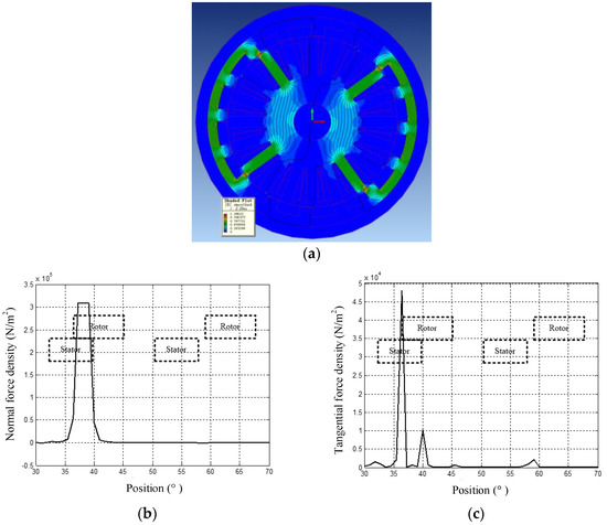 The tangential force contributes to the rotation of the motor. At the commutation time, the inductor current cannot be changed instantaneously, and the tangential force generated by the next excitation phase cannot reach the tangential force generated by the excitation phase before commutation. The decrease in the tangential force is dramatic, leading to torque drop at the commutation time and thereby causing large torque ripple.