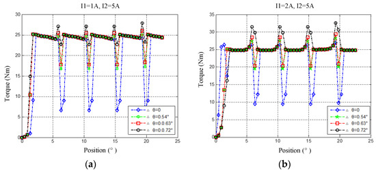 Torque ripple characteristics corresponding to different Δθ and I1: (a) I2 = 5 A (b) I2 = 10 A.