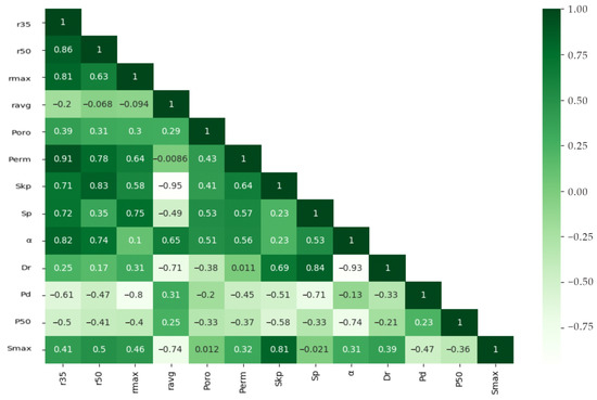 The R35 has been applied in many oil fields after being proposed by Winland (1972) [24]. However, studies in different oil fields have shown that the correlation between porosity, permeability, and pore throat radius is inconsistent with Winland’s conclusion. Pittman (1992) [18] gave empirical equations to calculate pore throat radius for mercury injection saturations from 10% to 75%, and identified the best correlation at the mercury injection saturation as 25%.