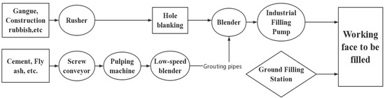 Paste filling is used to process several materials into a mixture using a conveying system to enter the gob to complete the filling, as shown in Figure 4.