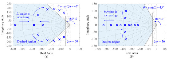 Closed-loop poles for current control when (a) varies and (b) varies.