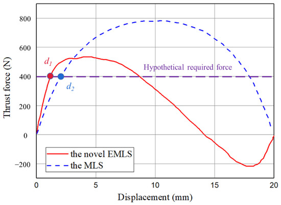 The thrust force comparison between the novel EMLS and normal MLS.