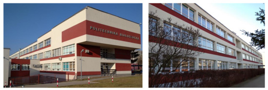 - Sadowska, B.; Piotrowska-Woroniak, J. Audyt energetyczny budynku Wydziału Budownictwa Politechniki Białostockiej; NAPE S.A. (National Energy Conservation Agency): Białystok, Poland, 2012. (In Polish) [Google Scholar]
