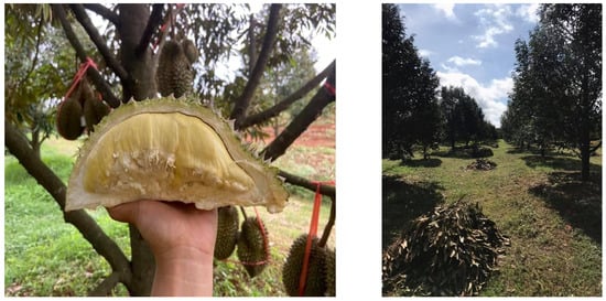 - Thongkaew, S.; Jatuporn, C.; Sukprasert, P.; Rueangrit, P.; Tongchure, S. Factors affecting the durian production of farmers in the eastern region of Thailand. Int. J. Agric. Ext. 2021, 9, 285–293. [Google Scholar] [CrossRef]