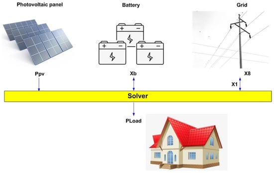 The research results found that the problem of choosing multiple power sources to reduce energy costs was a major issue. Furthermore, the importance of this problem was recognized to be consistent with the findings of Warkozek et al. [33], who defined and analyzed optimal energy management in multisource systems. An overview of the research model of the selection of the power source is shown in Figure 3. Based on Figure 3, the research team adapted the linear formula of our optimization problem according to Equation (1) of Warkozek et al. [34].