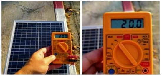 Figure 7 shows the test to assess the potential of generating electricity from solar cells in the research area. The researchers found that in research area, electricity could be generated from solar cells for up to eight hours a day starting from 08:00 h., to 17:00 h., which made it easy to decide how it could be utilized. The power from the solar cells was combined with traditional electric power in this research.
