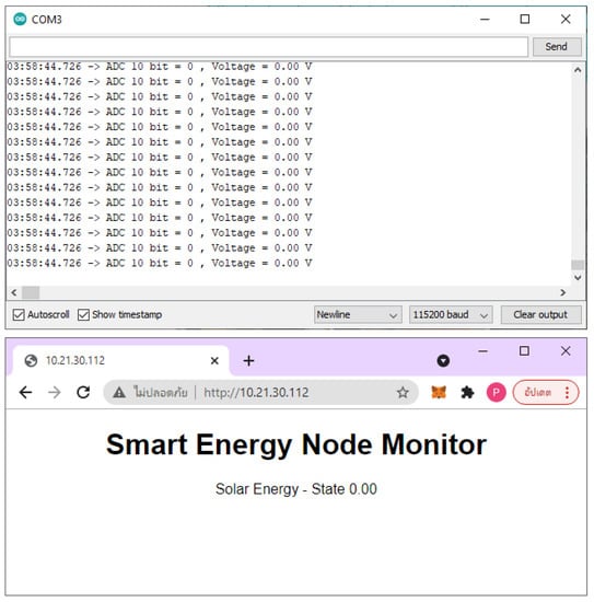 Monitoring of the smart energy node can be done over the Internet using the HTTP protocol, which is the result of applying the ESP32 microcontroller to this research.