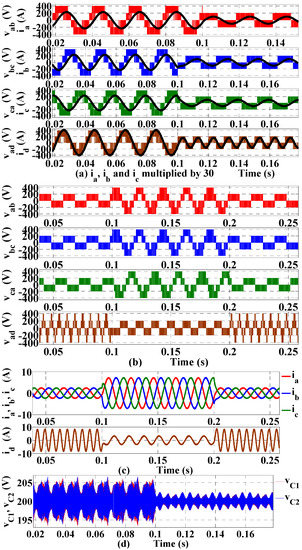 Restoration of the balance over the DC-link capacitor voltages was achieved by adding an unbalanced compensation signal, vcomix, to (17a,b), and modifying these equations as: