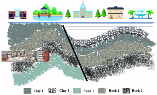 By dividing the tunnel alignment into three general sections in terms of geological and geotechnical conditions, Avunduk et al. [12] proposed an empirical model for predicting excavation performance of TBM. Through the mechanical decoupling method for analyzing the cutterhead–ground interaction, Zhang et al. [13] proposed an approximate calculation method for determining the load acting on the cutterhead. Based on the interaction between the TBM and excavated material, Faramarzi et al. [14] applied the discrete element method (DEM) to evaluate the TBM torque and thrust. Rock–soil mechanics methods and empirical models are both based on the premise that the geological information is known. However, the accurate prediction of a geological profile before excavation is a hard and challenging task. In tunneling and underground excavation, the geological information is obtained through borehole sampling, and the stratum between sampling points are usually estimated by linear fitting. The distance between the sampling points is typically considerable, and the relevant result is often different from the real distribution, which may affect the accuracy of the rock-soil mechanics methods and the empirical models [15].