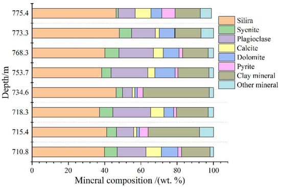 Diagram illustrating the mineral composition of shale samples studied according to depths.