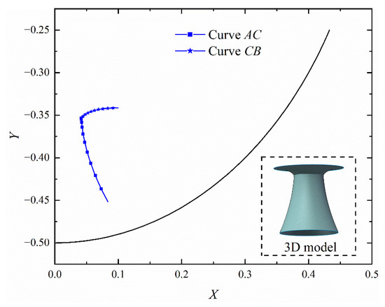 Considering the convenience of the design, the Bézier curve based on the Bézier polynomial parametrization is introduced. Bézier curve is a parameterized curve controlled by control points with good continuity, conductibility, convex hull property, and endpoint property, which is very convenient for generatrix design [33]. A Bézier curve of order n can be defined as: