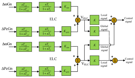 The concept of the multimodal controller is to design multiple controllers to enhance the damping of specific weak modes. In this concept, when one of the controllers fails, the other controller can work as a backup. Furthermore, the structure of this controller is multi-input multioutput (MIMO). Hence, this controller is also resilient to communication failures [15]. Figure 3 shows the multimodal controller (MMC) structure used in this paper.