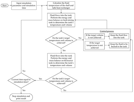 Figure 6. The generalized dynamic equations that determined the tank’s temperature and volume were analyzed and developed for the simulation based on the analysis conducted. These calculations are expressed in Equations (3) and (4).