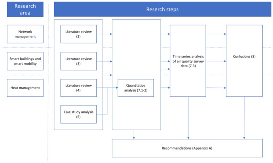 The multiple threads of the research required the utilisation of various research tools. Quantitative methods aimed at calculating thermal energy savings, a case study was used along with studies based on public statistics (air quality). The plan for the research is shown in Figure 2.