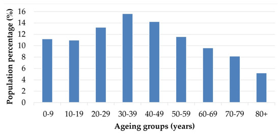 According to the 2011 national census, the percentage of age groups within the entire population of Crete is shown in Figure 2 [47].