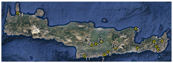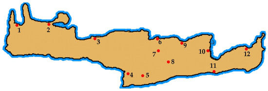 - Wikipedia: Crete. Available online: https://en.wikipedia.org/wiki/Crete (accessed on 10 March 2022).