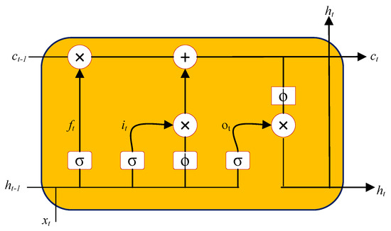 Figure 8 shows the LSTM architecture, which includes four layers in its hidden layers. RNN models are a specific type of LSTM models with a major difference, being the existence of gates in RNNs. The LSTM neural networks consist of three types of gates, namely, the input, output, and forget gates. The following equations represent the methodology of layers, operators, and gates of the LSTM model, as follows: