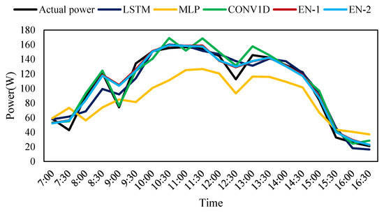 Figure 13 shows the actual power diagram of the PV plant and the predicted power by the predictor models for one day. Accordingly, the graph indicates that the output of the ensemble models is closer to the actual value compared with the rest of the models.