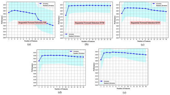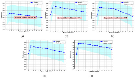 Figure 17 shows how five different algorithms perform on the training dataset in the process of feature selection. Looking closely at Figure 17d, it is evident that the proposed method performs the best with three features.