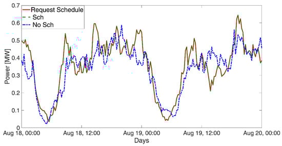 Hence, in the real-time, the CCA will adjust the power absorption of the EVs by scheduling their charging, in order to meet the corresponding Power Request Schedule (i.e., ).