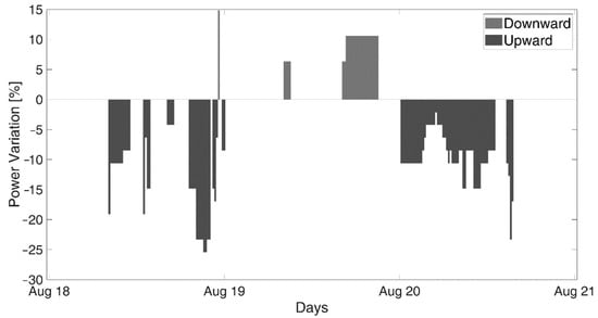 Then, during the ASM sessions, the Aggregator submits bids for upward and downward reserve. In case of acceptance, AS requests () are notified 15 min before the real-time as power variations with respect to the Power Baseline Schedule, as defined in Equation (2), where a load sign convention is adopted: