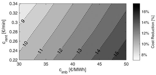 The second term of the objective function (Equation (6)) is addressed to preserve the quality of the carsharing service. It assumes that the carsharing operator’s loss of profit is proportional to the reduction of the EVs’ range autonomy caused by an incomplete battery charging: