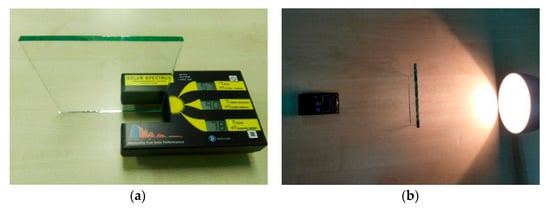 Five samples of each glass and acrylic Perspex (20 cm × 20 cm) with thicknesses: 3, 4, 5, 6 and 8 mm were tested. Solar spectrum transmission was measured using the EDTM-SS2450. Generally, solar radiation contains three primary forms of light: ultraviolet (UV), visible and infrared (IR).