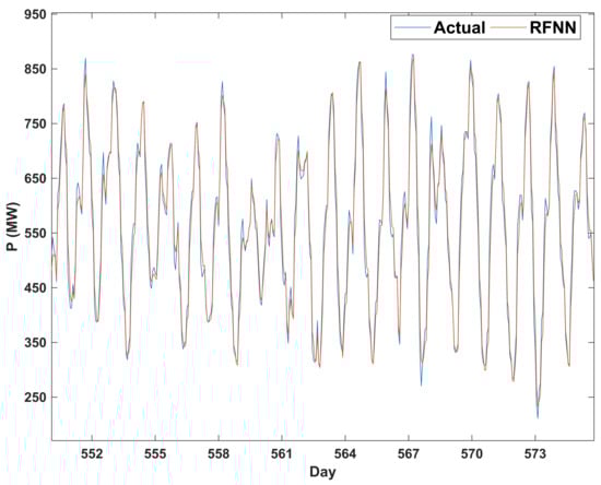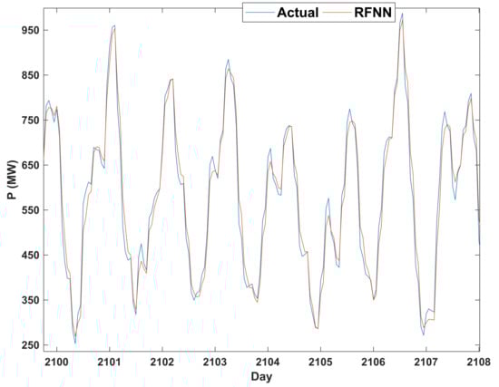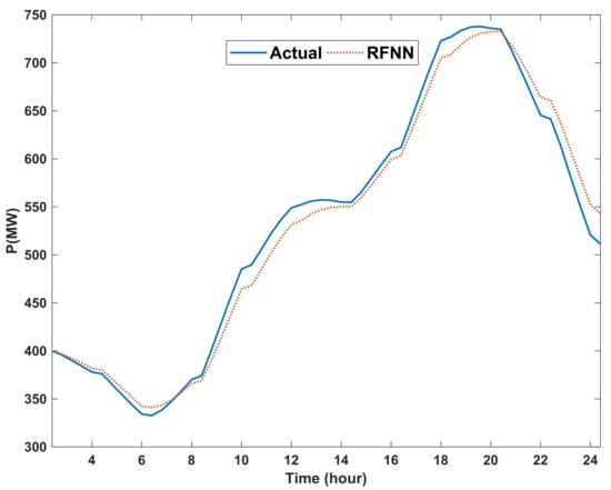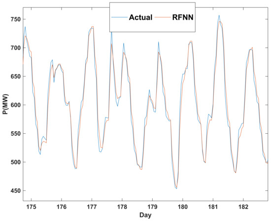In Figure 11 and Figure 12, the least consumed (holiday days and average temperatures) and the most consumed (non-holiday days and warm temperatures) were predicted, respectively. As can be seen, the proposed method performs well. Other days of the year are easily predictable since they have consumed between the two days above. Figure 4, Figure 5, Figure 6, Figure 7, Figure 8, Figure 9, Figure 10, Figure 11 and Figure 12 show that if accurate data on the consumed electrical load by an area are available, by designing and adjusting a recurrent fuzzy neural network, the load of the coming days can be well predicted with a more than 95% accuracy. With more information available (e.g., ten years or more) using big-data techniques, more than 98% accuracy can be achieved. However, large data volumes reduce the speed of the training and processing of the recurrent fuzzy neural networks. However, computers with fast processors can overcome this problem. The results of this study can help plan electricity generation in the Kermanshah region. Some generators can be removed if not needed. Electricity can even be sold to neighboring countries. Table 1 shows a comparison between our proposed method in this paper and the method of two valid references.