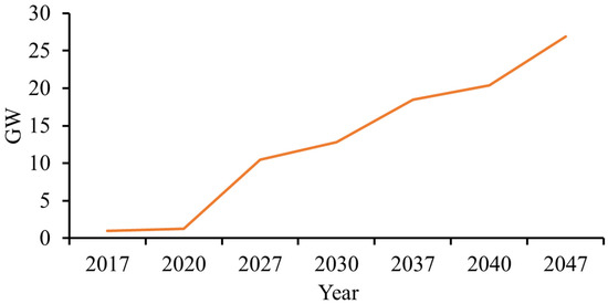 The trend of the PV capacity in Pakistan till 2047 [13].