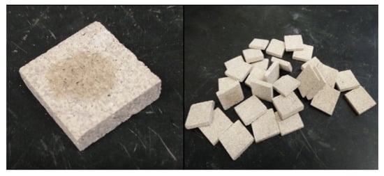 In this experimental work, the samples used were taken from an outcrop wedge of Indiana limestone (ILS). The ILS is a sedimentary rock, known as Salem-formation, which are quarried largely in the mid-western United States (US) [43,44]. Table 1 shows the ILS core samples’ properties in average parameters values (i.e., porosity, permeability, and unconfined compressive strength or UCS) as provided by the supplier company (i.e., KOCUREK Industries, Inc., Caldwell, TX, USA).