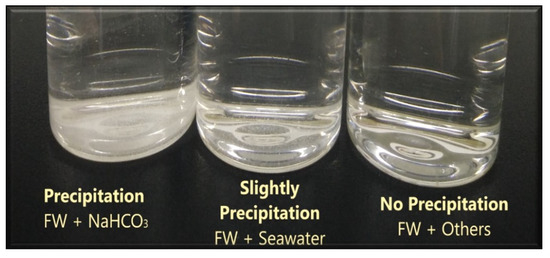 A compatibility test between injected fluid (e.g., our designed smart water) and formation water (FW) is a crucial screening step that thwarts precipitation (i.e., forming of sediment) and any formation damage that could occur to palpably reduce the oil production [46,47].